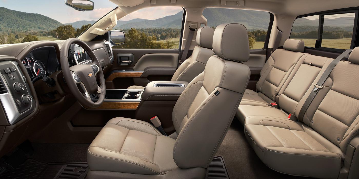 With three engine options, you can customize your Silverado 1500's performance to suit your needs. The base engine is a powerful 4.3L V6 engine that delivers 285 horsepower and 305 lb-ft of torque. It has the best fuel economy of the bunch, with an EPA-estimated 18 mpg City/24 mpg Highway. This engine is perfect for commuters and families who will occasionally need moderate towing and hauling capability. If you are looking to tow heavier loads more often, you may want to upgrade to one of the two V8 engine options. The 5.3L V8 puts out 355 horsepower and 460 lb-ft of torque, while the larger 6.2L V8 produces 420 horsepower and 460 lb-ft of torque. When properly equipped, the 6.2L engine can tow a best-in-class 12,500 lbs and haul up to 2,250 lbs. (If you need even more towing capacity, you'll want to look at the 1500's big brothers-the Silverado 2500HD, with a 18,100 lb max, and the Silverado 3500HD, with its 23,300 lbs max.)